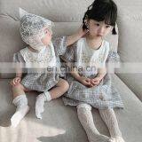 Sisters Outfit Toddler Baby Girls Dress Cotton Embroidery Flowers Plaid Kids Dress Childrenswear Wholesale
