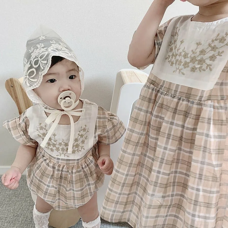 Home > Products > Girl dress , skirt > Sisters Outfit Toddler Baby Girls Dress Cotton Embroidery Flowers Plaid Kids Dress Childrenswear Wholesale