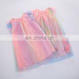 Sleeveless Colorful Rainbow Fly Sleeve Clothing Mesh 1-8 Year Girl Performance Mini Dress Princess Gown Party Girl Sweet Dresses