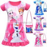 2020 Summer Child Fashion Elsa Short Sleeve Party Anna Clothe Shoulder Bag Kid Princess Party Cute Elsa Dress Casual Girls Dress