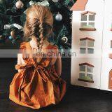 2020 New Hot Sell 1-4T Summer Baby Girl Solid Brown Dress Baby Bow Backless Sleeveless Pleated Dress