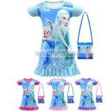 2020 Summer Child Fashion Elsa Short Sleeve Party Anna Clothe Shoulder Bag Kid Princess Party Cute Elza Dress Casual Girls Dress