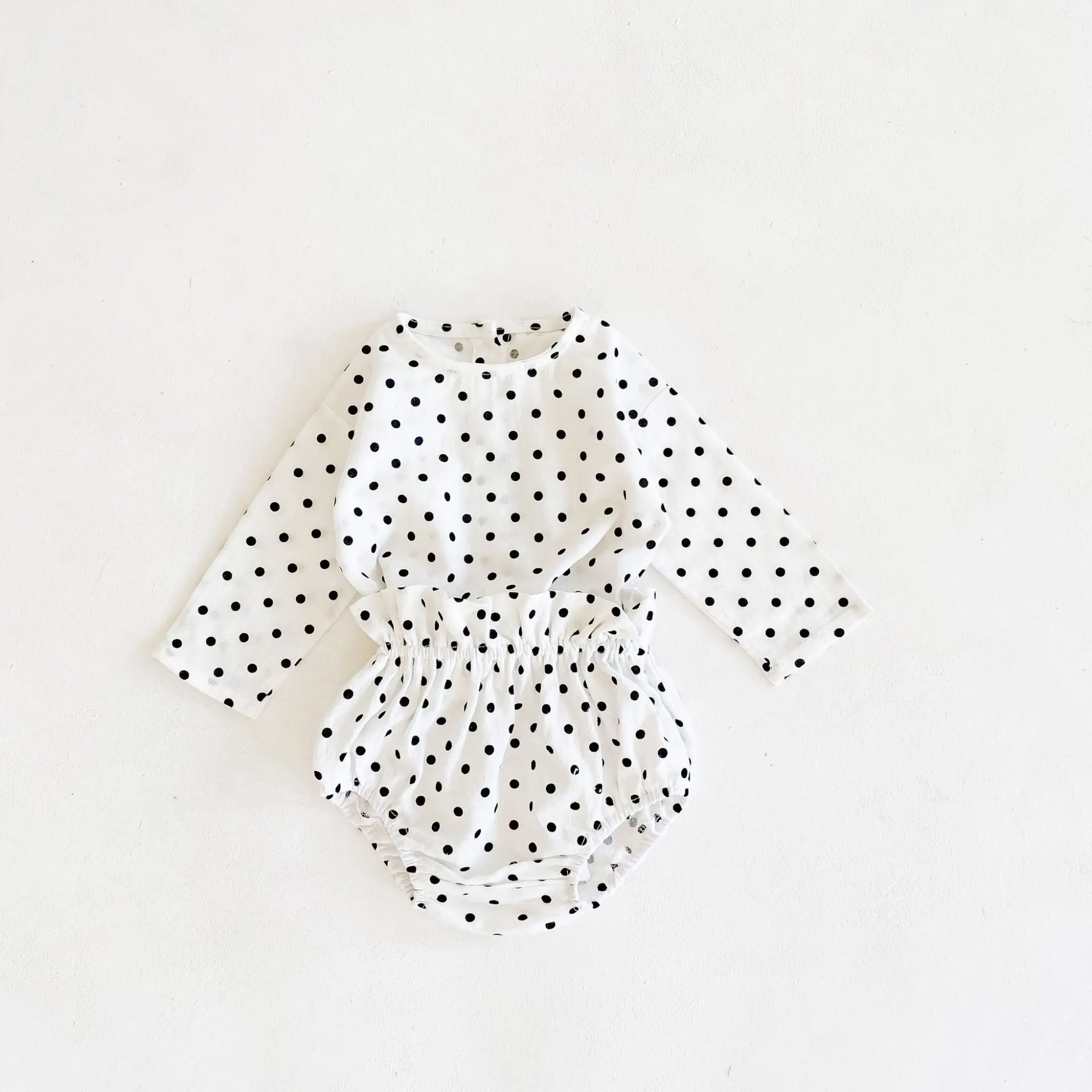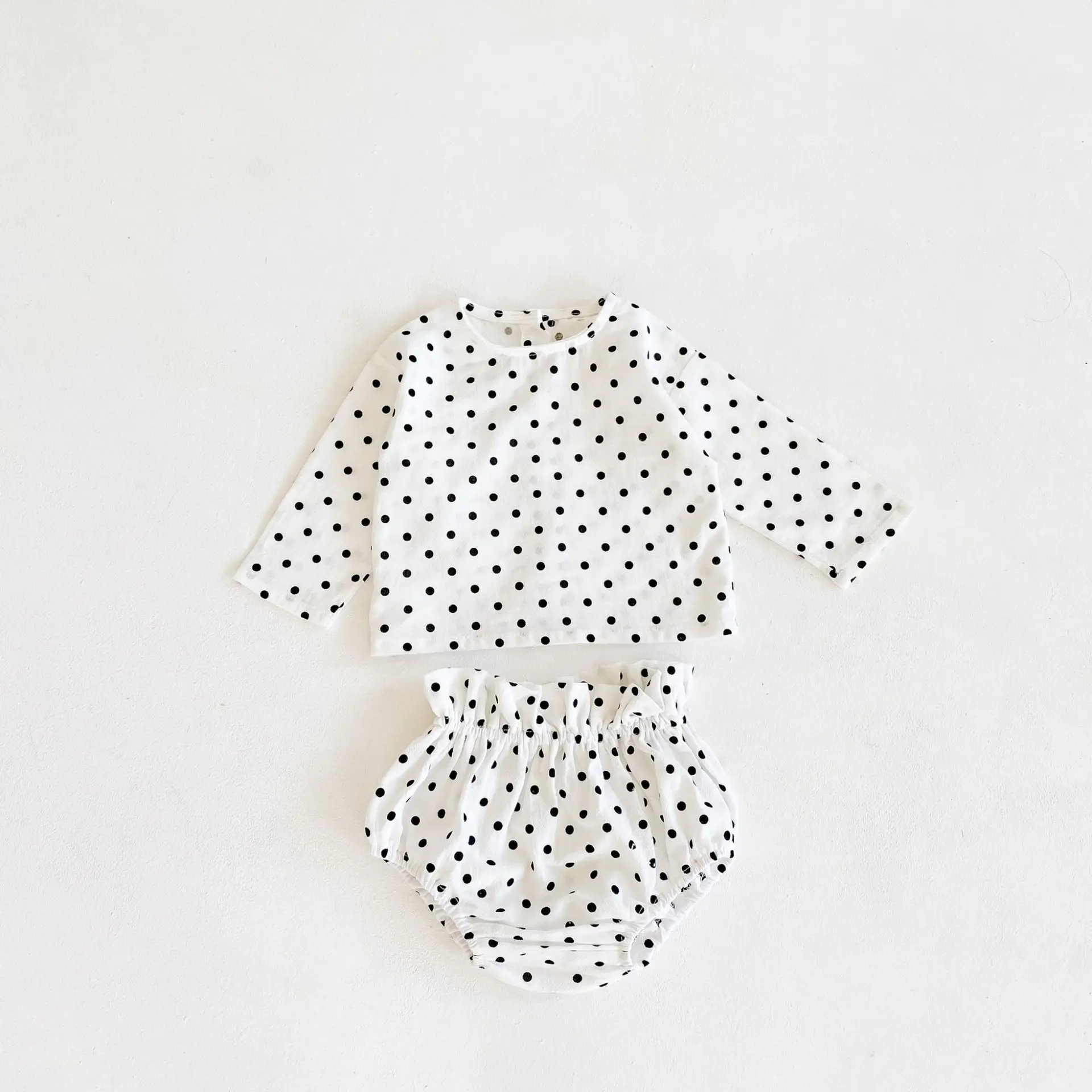 Home > Products > Kids Clothing Set > 2020 Spring and Autumn Baby Sets Full Sleeves Dots Tops + PP Shorts 2 Pcs Baby Boys Girls Sets