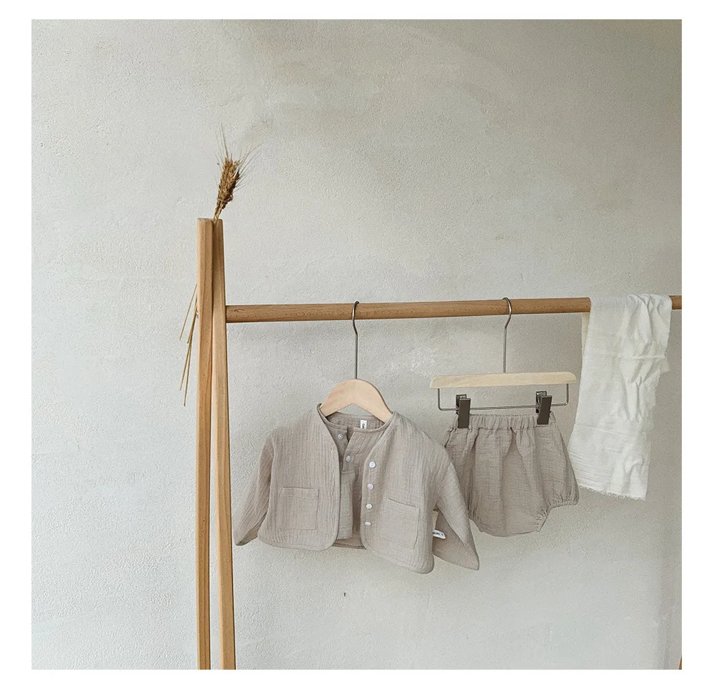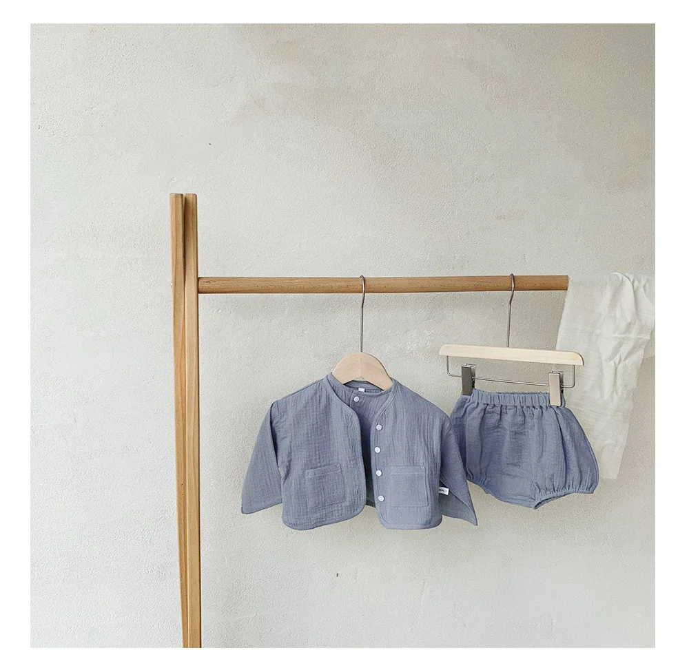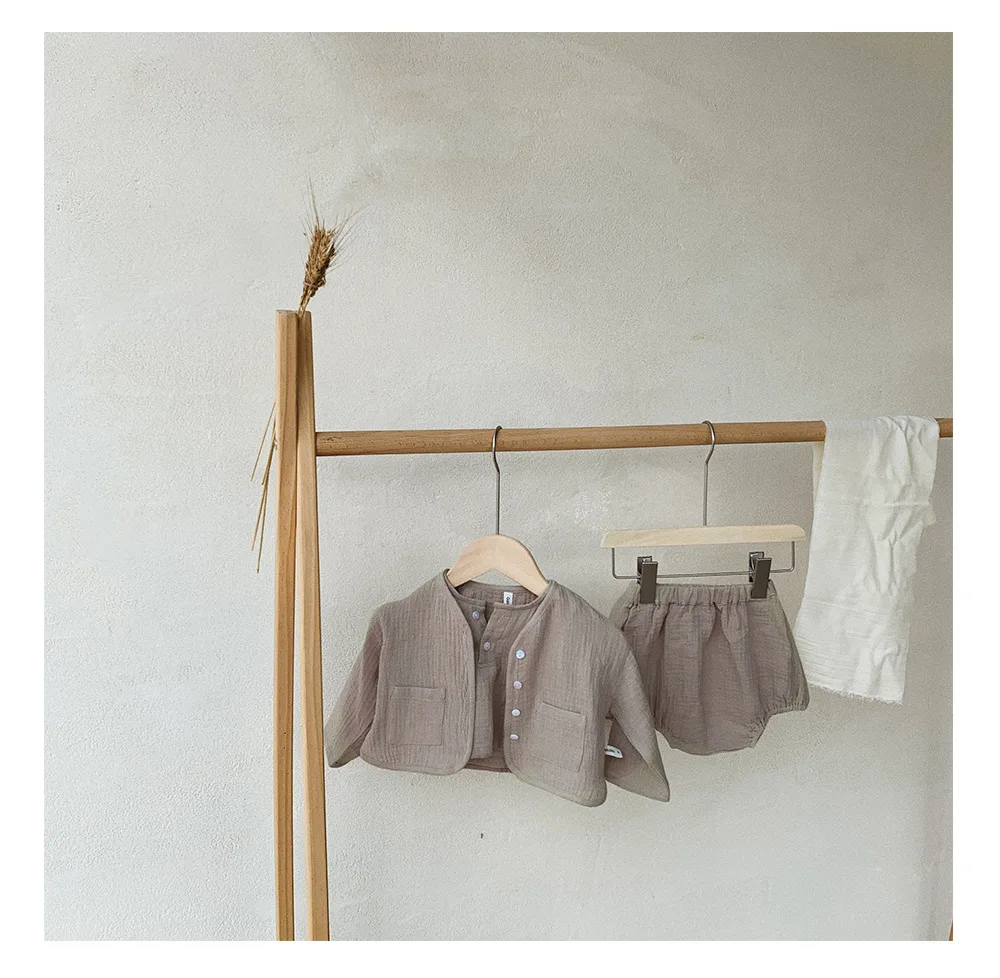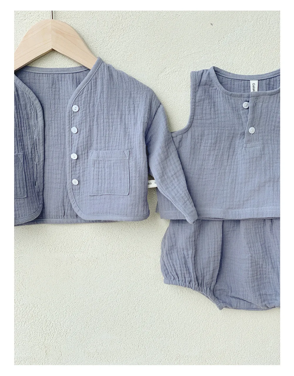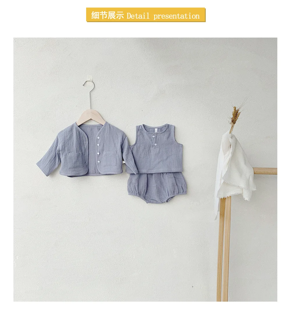 2020 New Baby Girls Boys 3 Pcs Set Coat+Vest+Shorts Autumn Cotton Linen Fashion Babys Suits