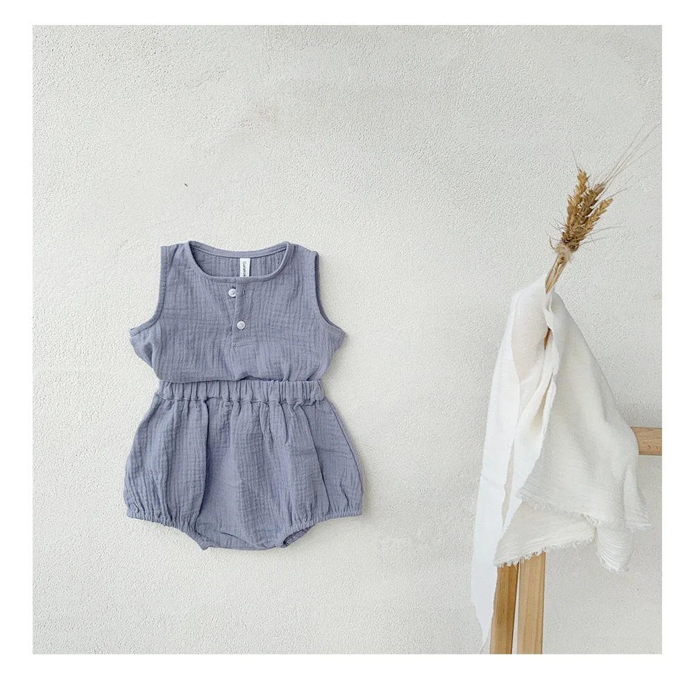 2020 Casual Baby Ribbed Knitted Clothing Summer New Boys Girls 2Pcs Button Ruffle Sleeveless Top Vest+Striped Shorts Sets