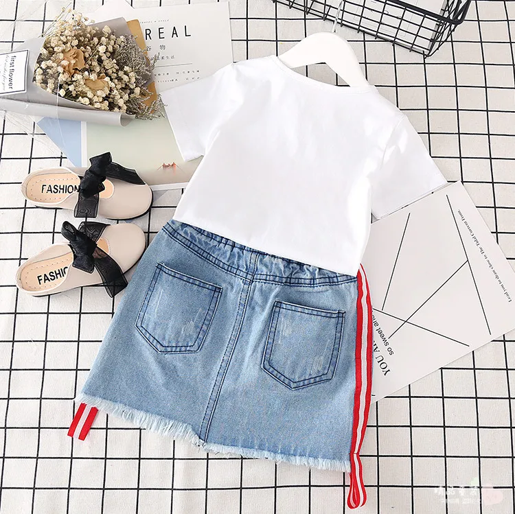 Girls Summer Clothing Sets Short Sleeve Tops + Skirts Fashion 2Pcs Kid Girls Outfit Sets Casual Baby Girls Clothes Sets