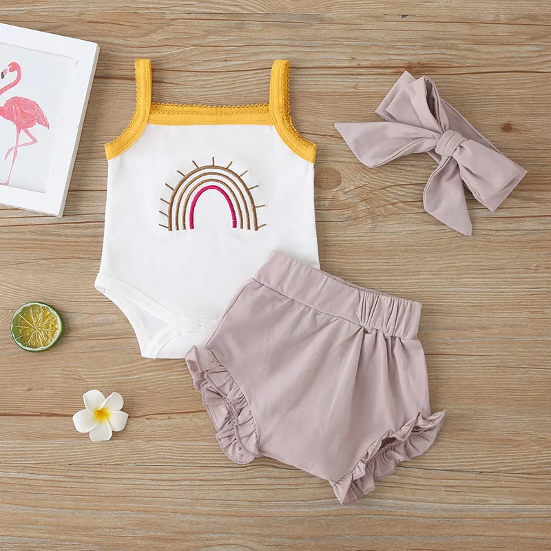 Product Name:  |  Newborn Baby Girls Clothes Rainbow Romper Top Jumpsuit Shorts Pants Headband 3pcs Outfits Set  | ||||||