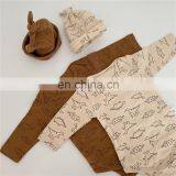Ins Baby Baby Dinosaur Round Neck Suit Cartoon Home Clothes Romper Jumpsuit + Hat