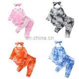 European and American Fashion Children's Clothes Hang Striped Cloth Tie-dye Romper Autumn Long-sleeved Three-piece Baby Set