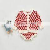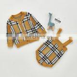 Ins Autumn Baby Suit Female Baby Western-style Plaid Knitted Jacket Strap Romper Romper Two-piece Suit Single Shot
