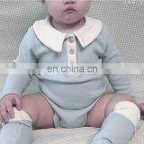 Ins Korean Baby Simple Knitted Bag Fart One-piece Romper Male and Female Baby Thread Open Collar Long-sleeved Romper Autumn