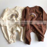 2020 Autumn New Babys Beige Brown Rainbow Embroidery Romper
