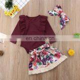 2020 Autumn New Baby Girl Long-sleeved Cute Floral Romper Lace Collar