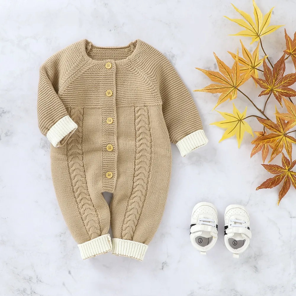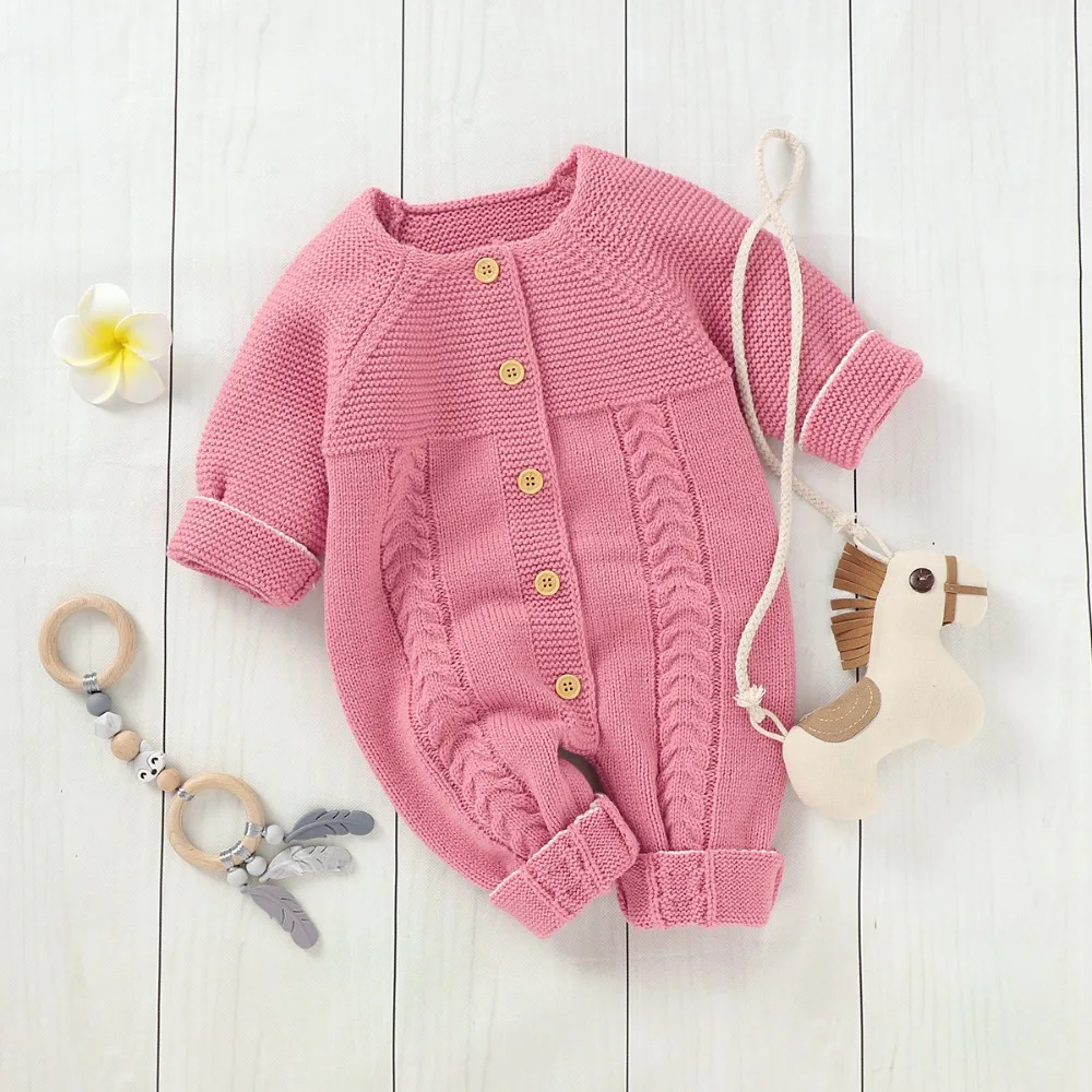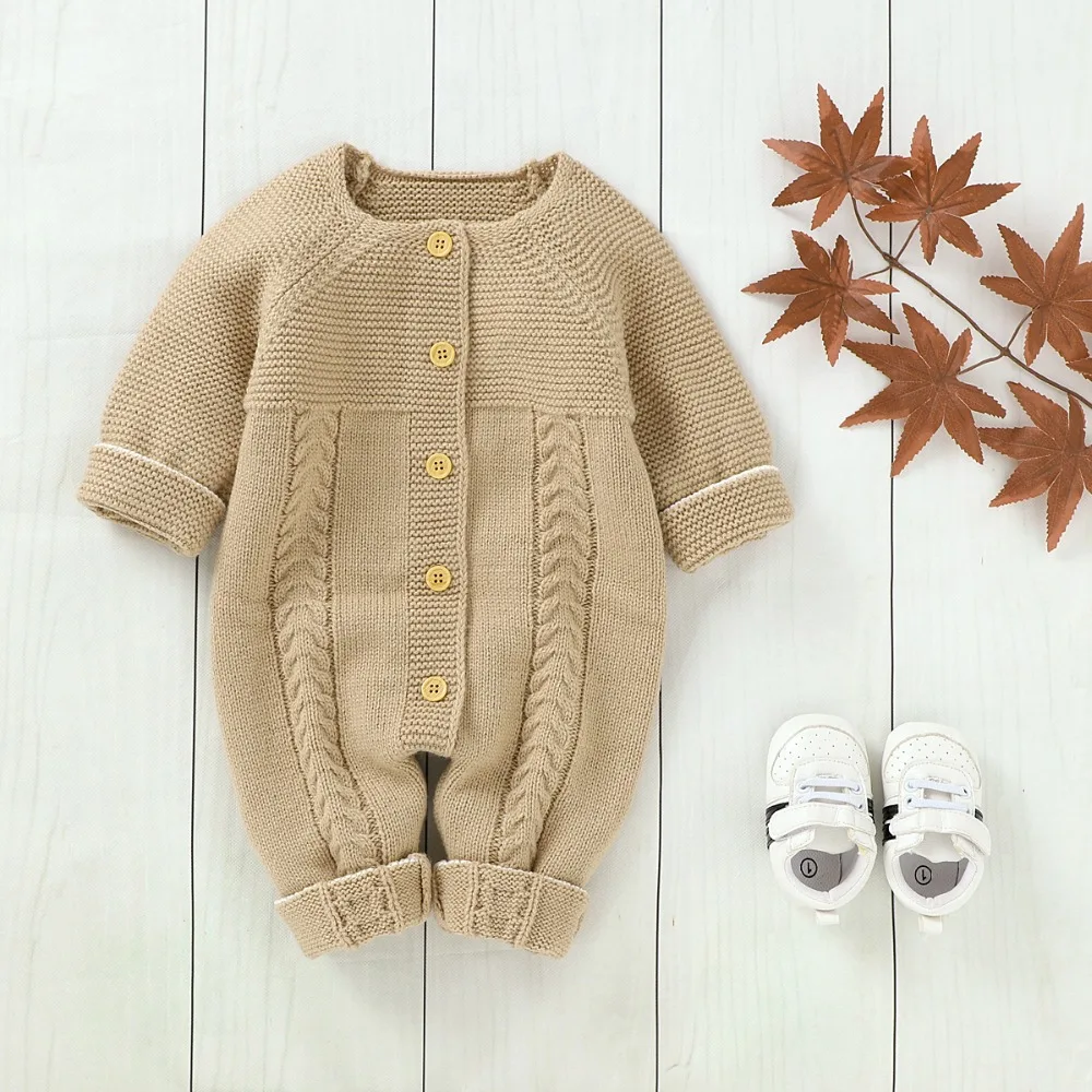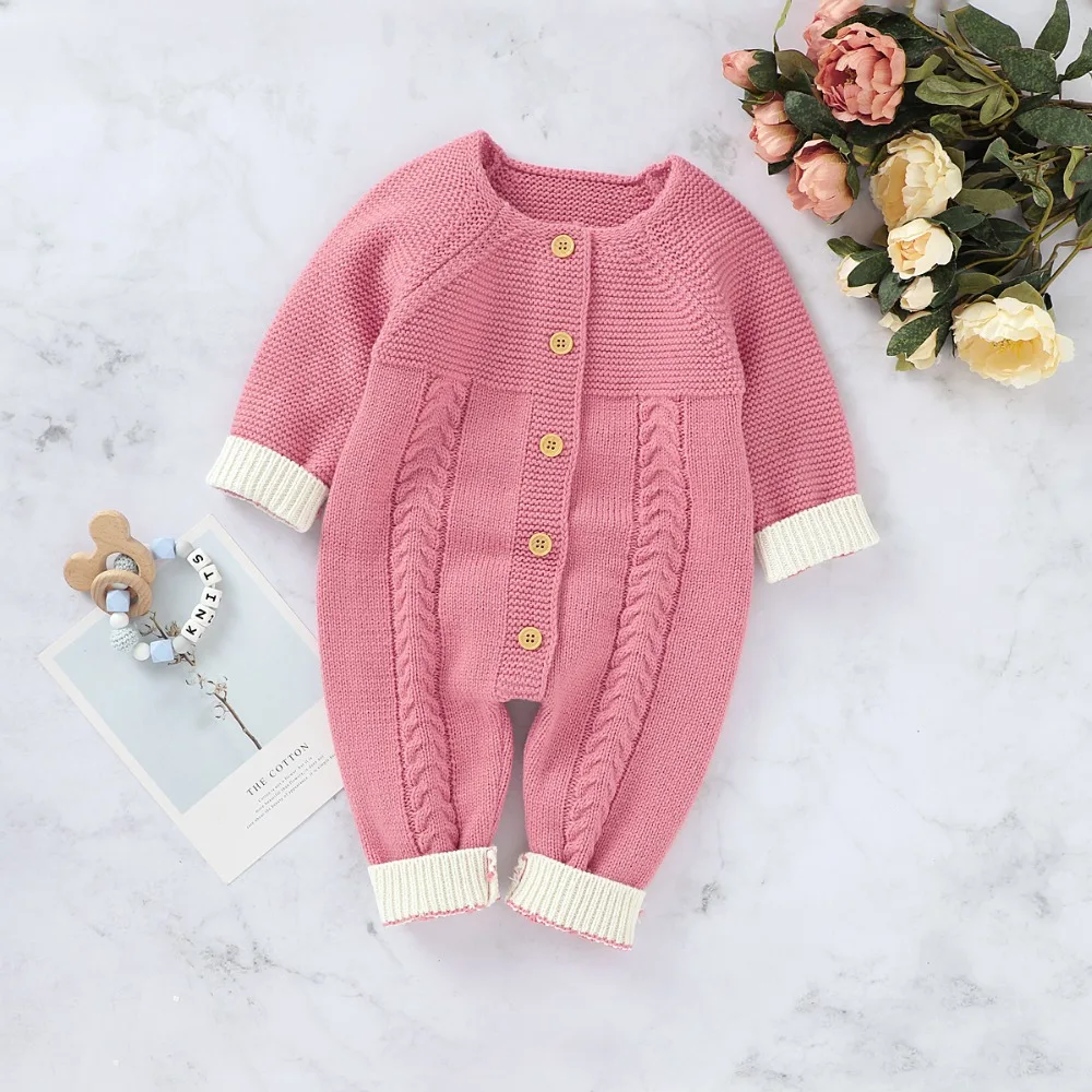 Baby Rompers Clothes Winter 0-24M Newborn Girl Boy Knitted Infant Kids Jumpsuits Outfits Long Sleeve Cotton Overalls Solid Color