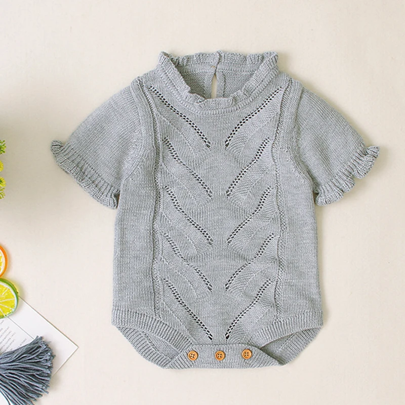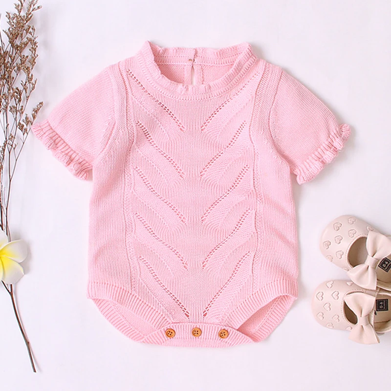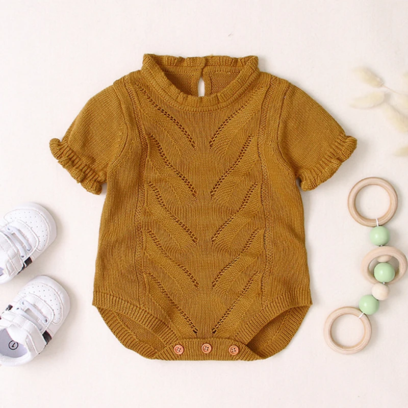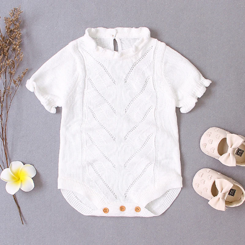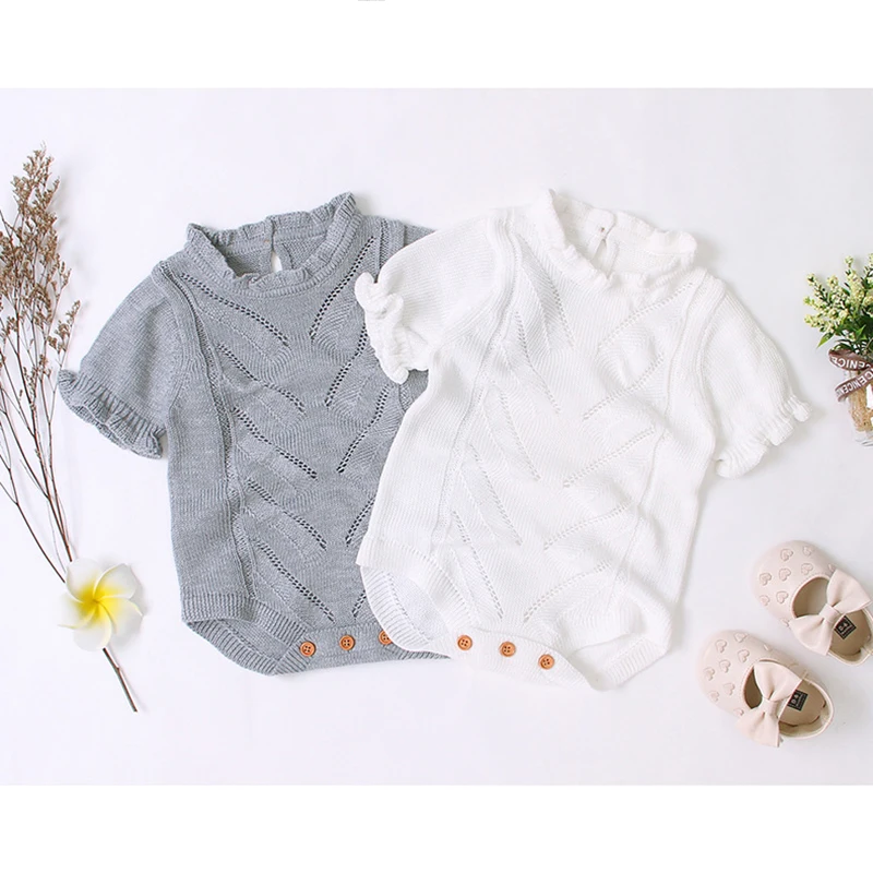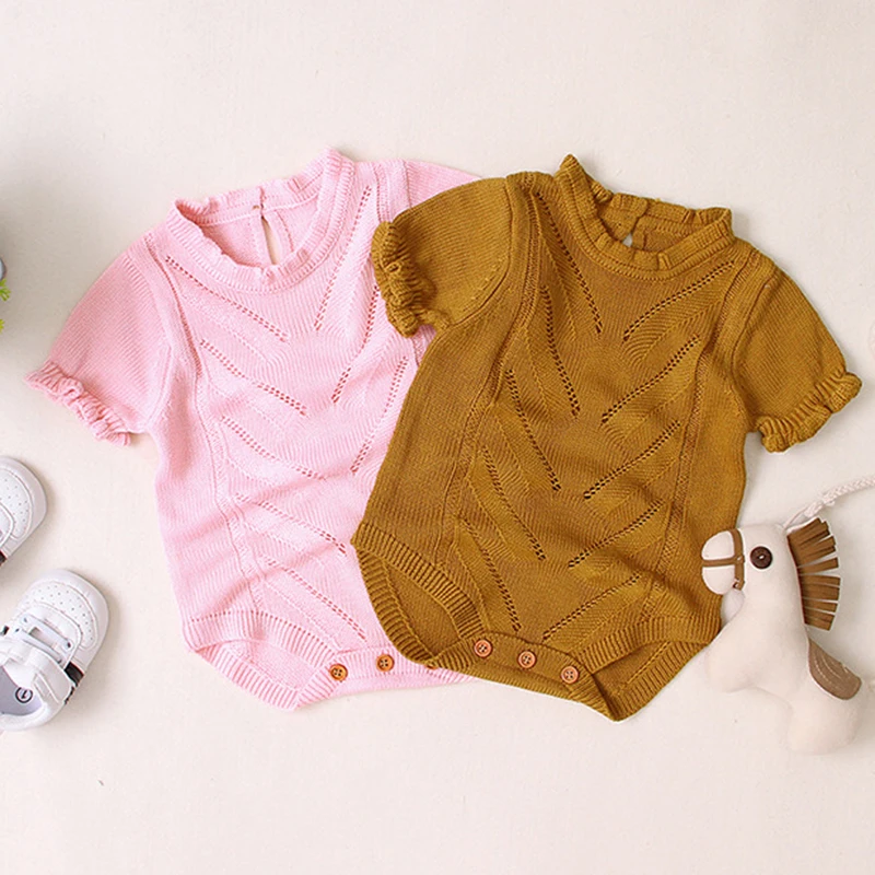 Baby Girls Short Sleeve Rompers 2020 New Autumn Infant Baby Romper Newborn Baby Girl Clothes Knitting Lace Rompers