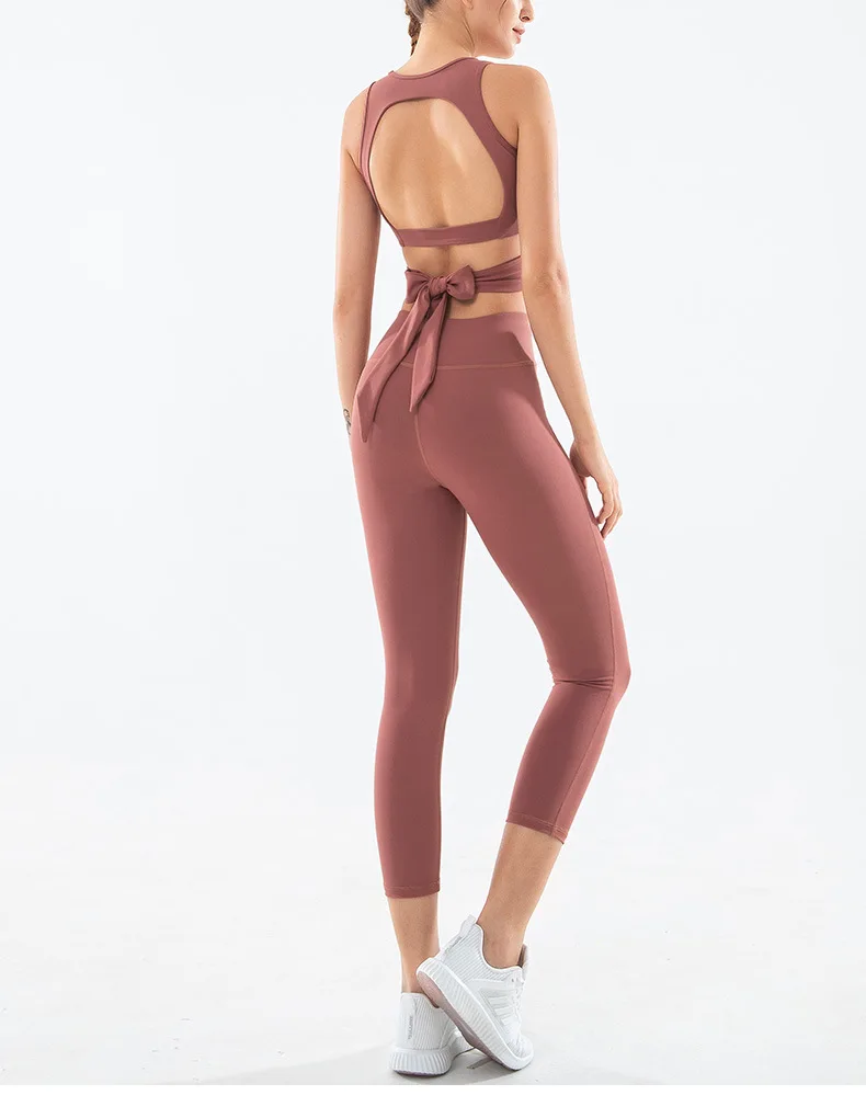 New Design Tie Knot Women Gym Yoga Sport Workout Clothing Sets Wear