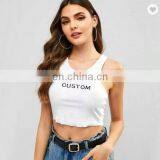 The Latest Ladies Custom Logo Print Manufacturers Sleeveless Crew Neck Strap Cotton Spandex Knitted Women Crop Top