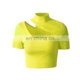 Hot Selling Women Sexy Cut Out t Shirt Crop Top