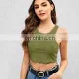 Wholesale Ladies Blank Rib Merrow Edge Sexy Women's Summer U Neck Basic Cotton Crop Top