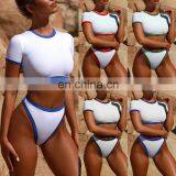 OEM New Short-Sleeved Split Tube Top Bikini Brazilian Swimsuit Sexy High Waist Swimwear Thong Bottoms T-Shirt Bikini
