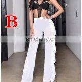 Sexy Transparent Mesh Wide Leg Trousers Pants With Crop Top SET 2PCS SET 5COLORS
