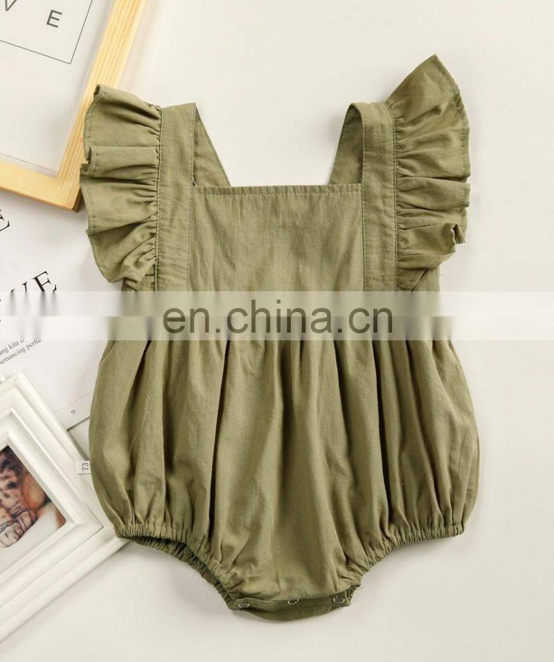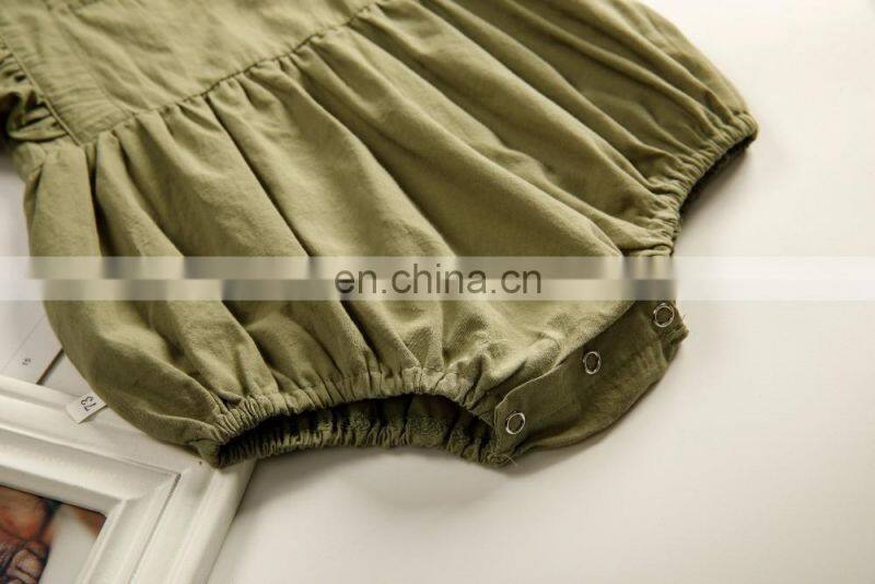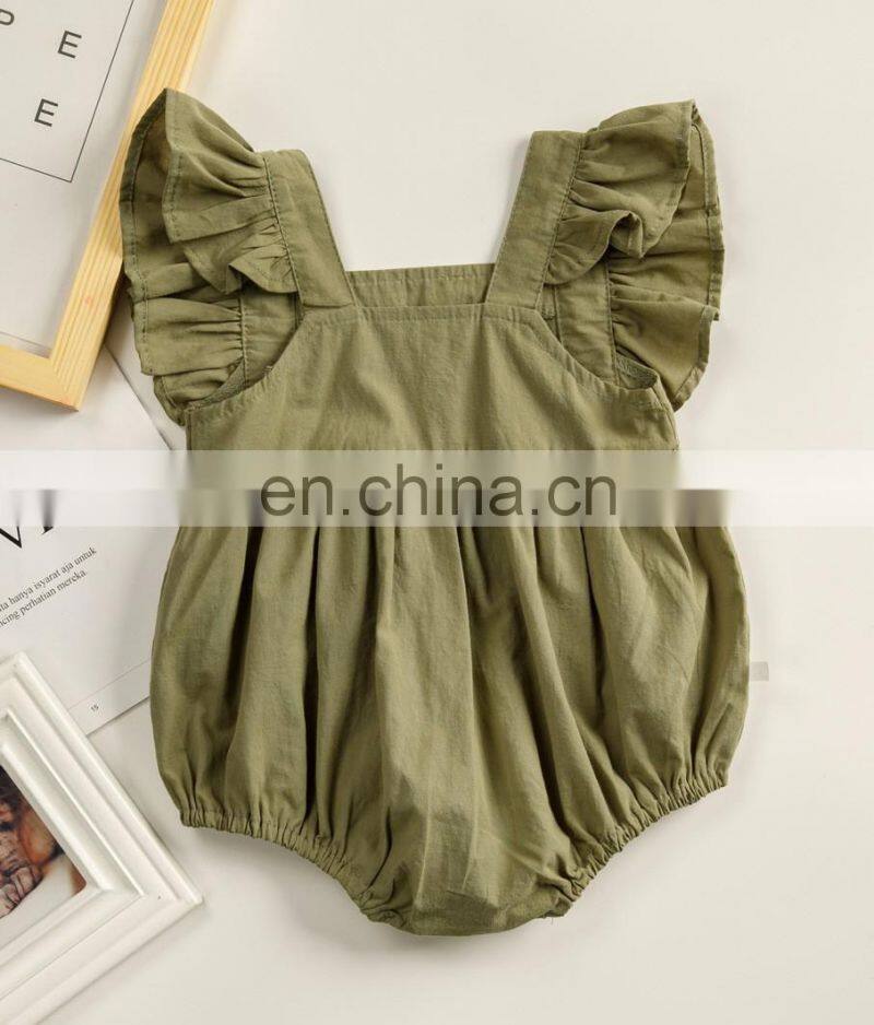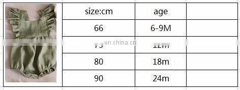 Free Ship 2019 Summer Fly Sleeved Baby Linen Cotton Girls Jumpsuit Rompers Green Pink Bodysuits