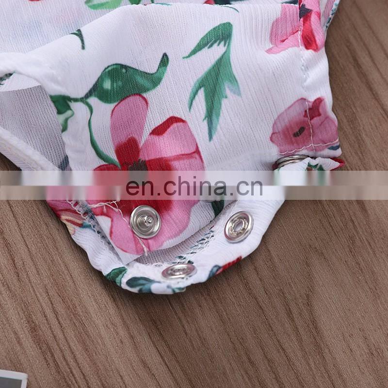 Newborn Lace Bow Rompers Infant Floral Print Bodysuit Baby Kids Girl Romper Jumpsuit Clothes Outfits