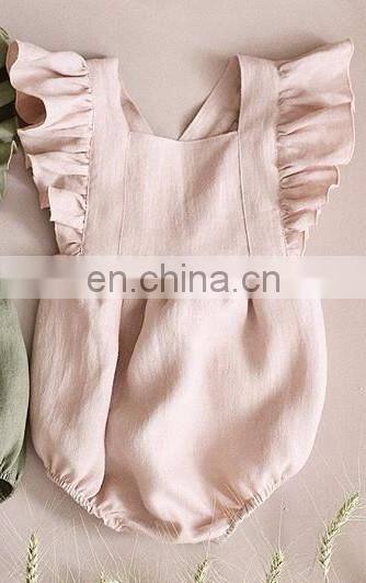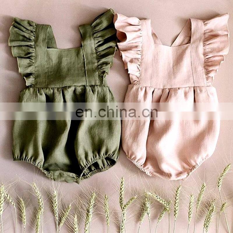 2019 Summer Fly Sleeved Baby Linen Cotton Girls Jumpsuit Rompers Green Pink Bodysuits