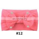 23Colors Baby Girl Headband With Pearl Bow Toddler Solid Color Headwear