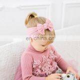 Baby Turban Nylon Headwrap Kids Girl Handmade Soft Headbands With Bow Solid Color 18Colors