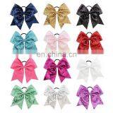 7Inches Girl Hair Ring Kids Large Sequin Bow Hairbands Solid Color Elastic Hairbows