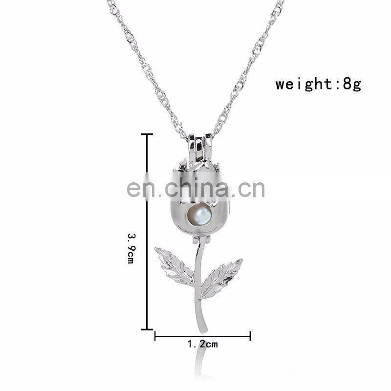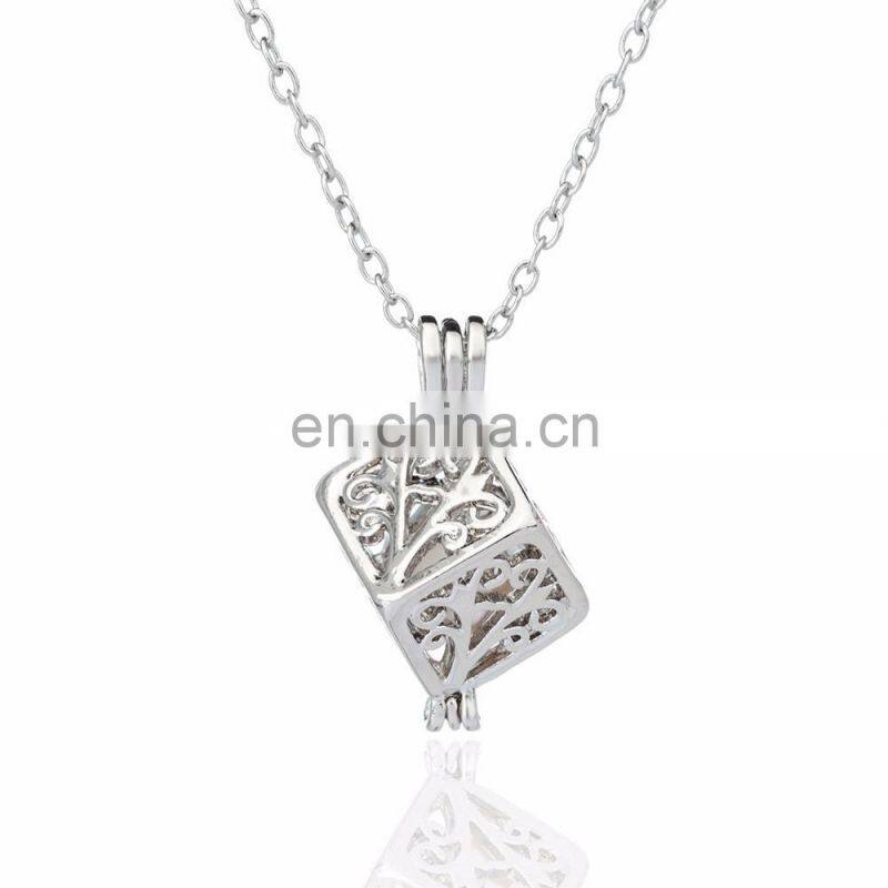 Female Jewelry Women Pearl Pendant Boutique Necklace Jewellery Girl Silver Cages Locket Hollow Out Necklace 63Styles