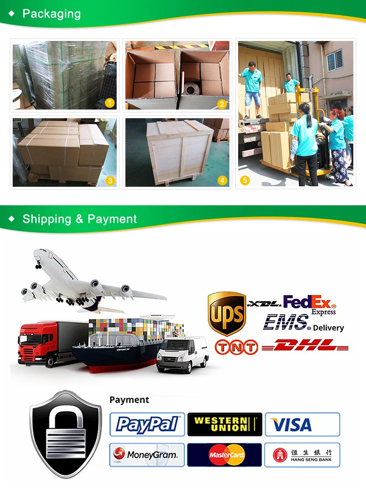 A: T/T: 50% of the total amount should be paid after the order confirmed as down payment, and the balance to be paid before shipping the goods out of our factory. (We will send you goods pictures before you pay the balance)