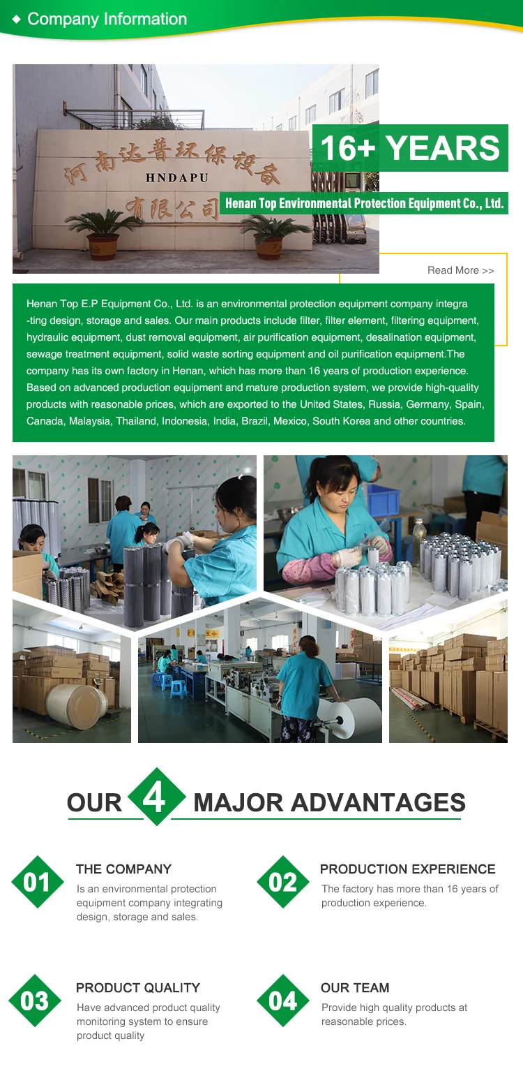 Manufacturers Production Plant Construction Machinery Precision Filter Hydraulic Oil Filter Fuel Filter