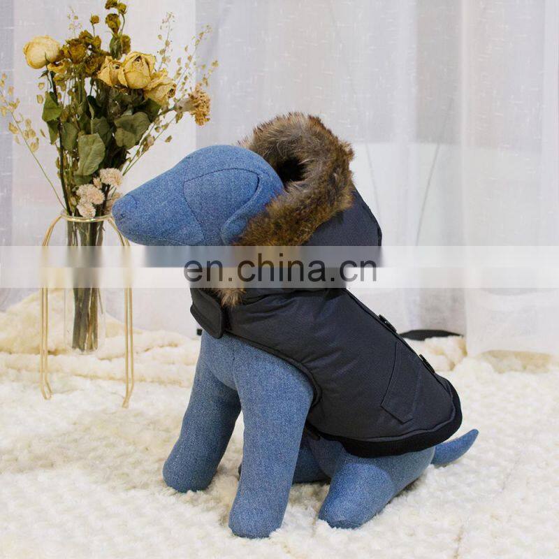 Fashion Design Thick Puffy Winter With Fleece Inside Dog Clothes Jackets Black Pet Coat