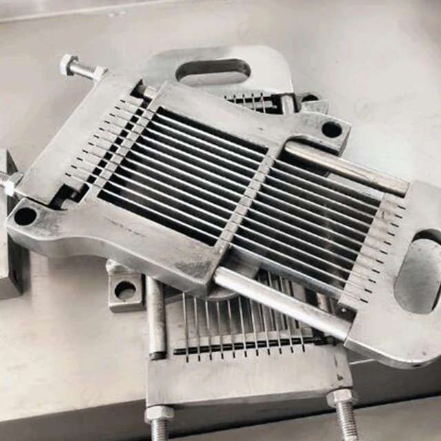 The meat dicer can cut frozen meat -3 to -4 degree into cubes directly,the cutting size is from 3mm to 30mm optional.