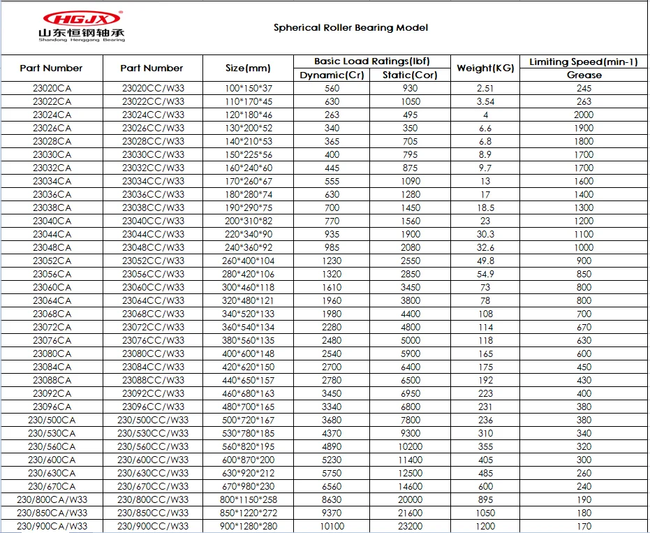 | Model Number | 23030MB/W33 C3 | Number of Row | Double Row | |