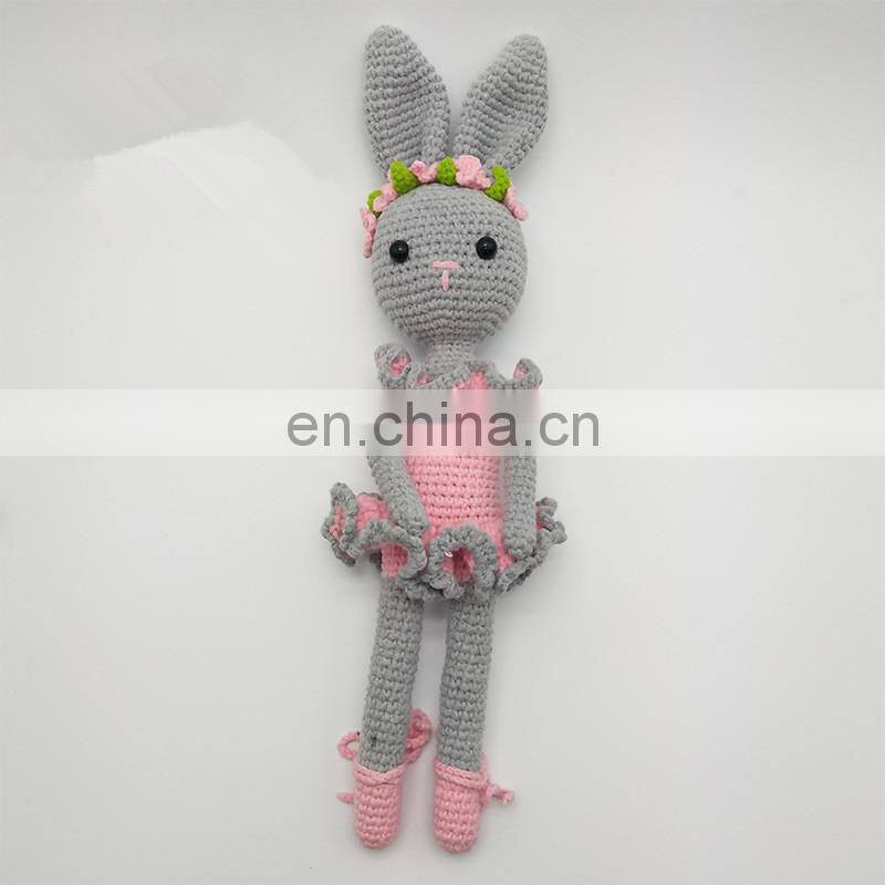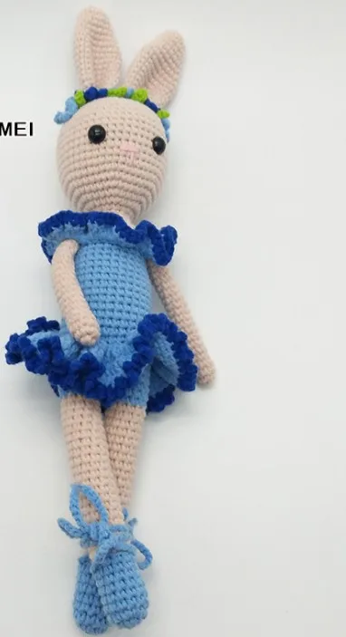 Amazon INS Hot Blue Color Knitted Stuffed Bunny Rabbit Plush Toy 100% Handmade Newborn Baby Crochet Toy