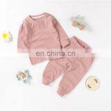 Wholesale Ribbed Soft Baby Clothes Set Pure Color Pajamas 2 Poeces Set