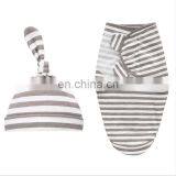2 Pieces Baby Swaddle Blanket Hat Set Knitted Cotton New Born Baby Sleeping Bag For 0-6 M