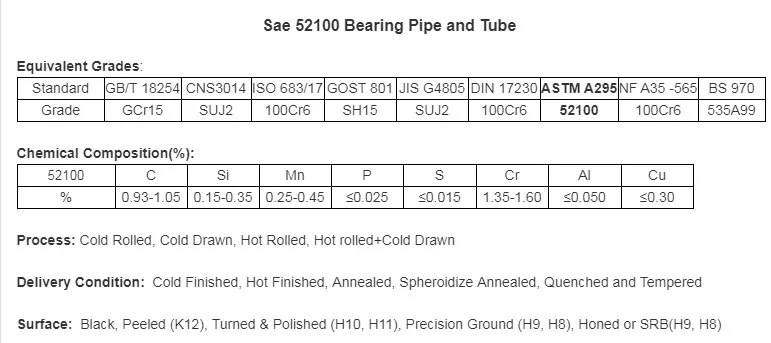 High Precision Sae 52100 100cr6 Bearing Steel Tube
