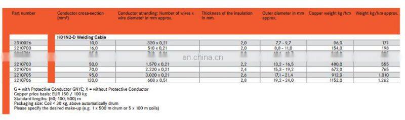 | Model Number | Welding cable H01N2-D/-E | Type | Low Voltage | |