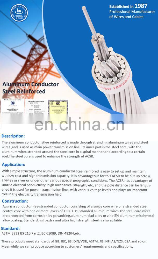 TDDL Aluminum Conductor ACSR ASTM BS IEC DIN GOST Standard ACSR bare Conductor Cable