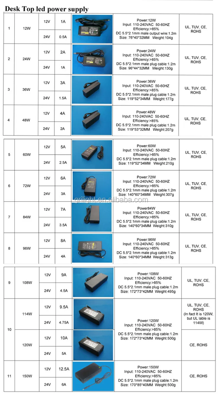 Desk Top Led Power Supply Series(12W-150W, UL listed)