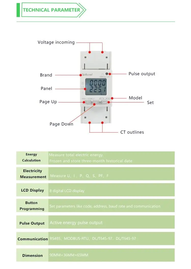 Home > Products > DIN Rail Energy Meter > Acrel ADL200 Digital Din-rail Single Phase Electricity Energy Meter