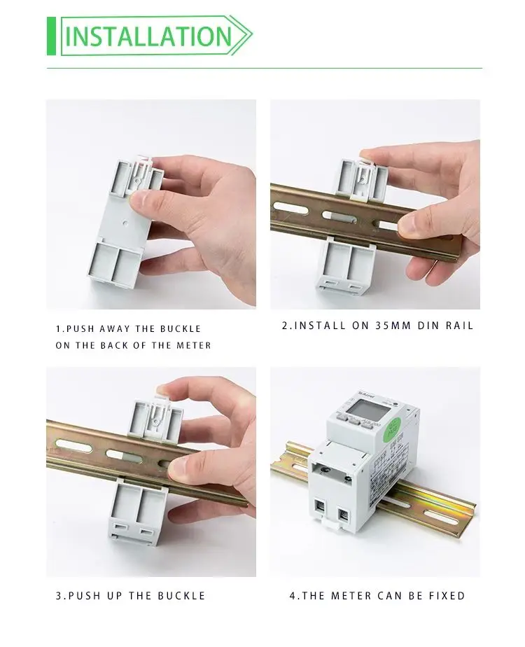 ADL100 din rail energy meter adopts DIN35mm din rail installation with LCD display,it can measure electric parameters and has energy pulse output, RS485 communication,which has the advantages of small size, high precision, good reliability and convenient installation.