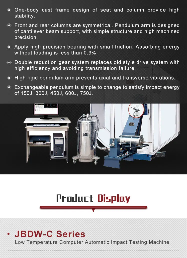 Impact Testing Machine Computer Control Semi-automatic Charpy Impact Testing Machine is used for measuring the metal material resistance performance under dynamic load,in order to determine the material
