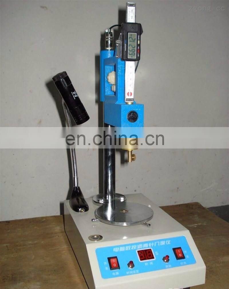 Double-digit display asphalt penetration apparatus is suitable to determine the penetration of pavement petroleum asphalt,modified asphalt,liquid petroleum asphalt and emulsified asphalt.It is also suitable to determine solid particle,powder,colloid and raw-food materials such as cheese,glycine,butter,cream and leavening.
