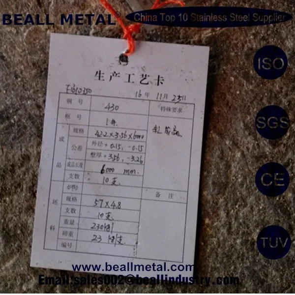 ss 430 Tube Stainless Steel, Pickled and Annealed, Plain Ends Supplier Price