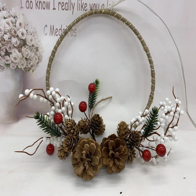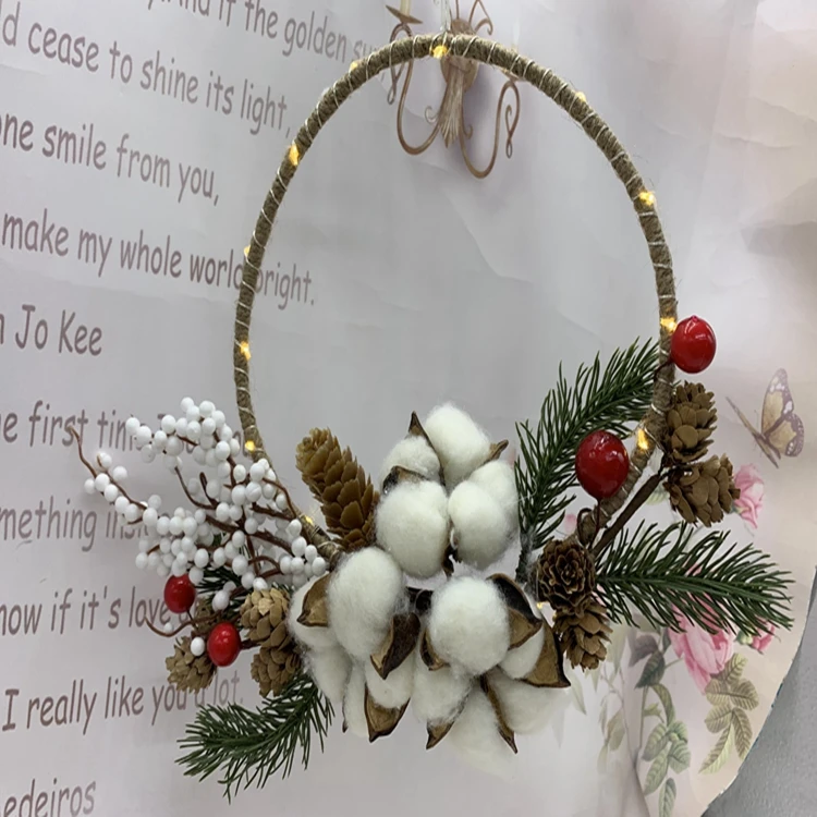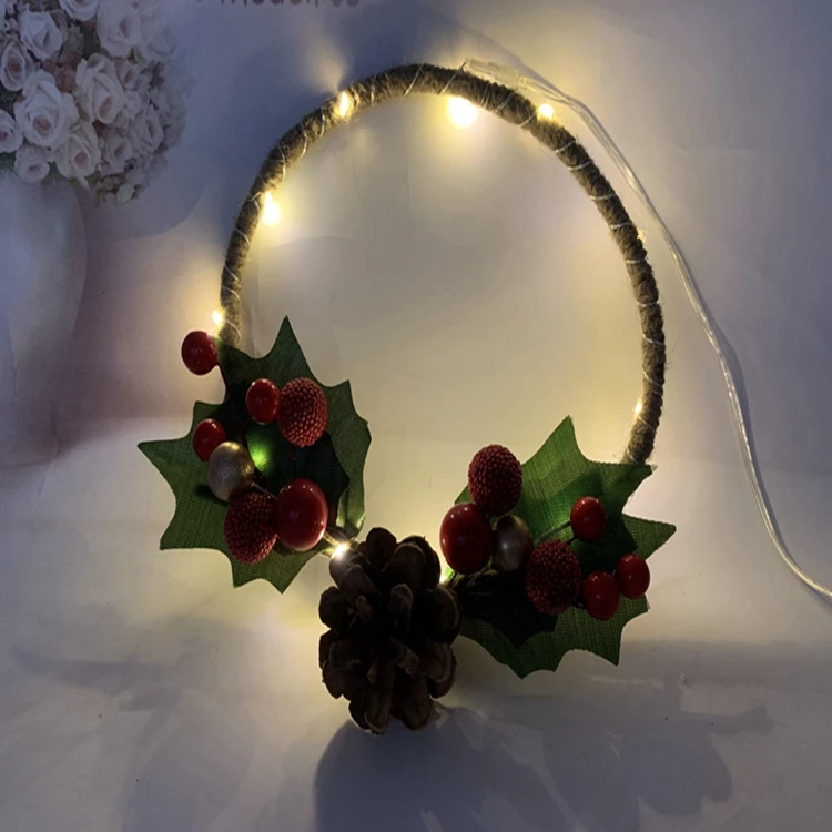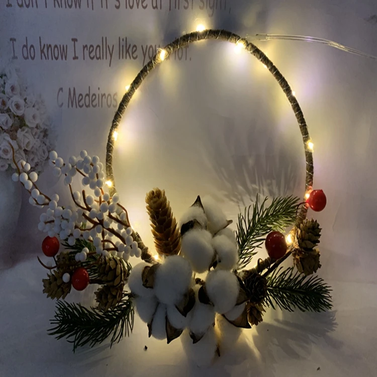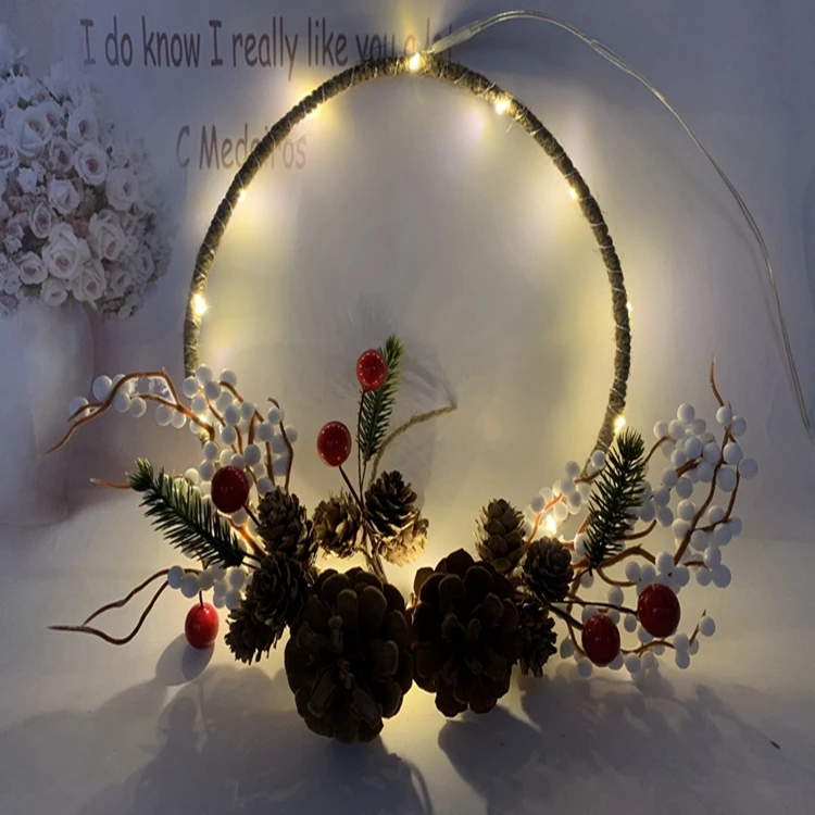 Home > Products > LED DECORATIVE LAMP > Christmas Pinecone/Cotton And Berry Wreath Copper Wire String Light